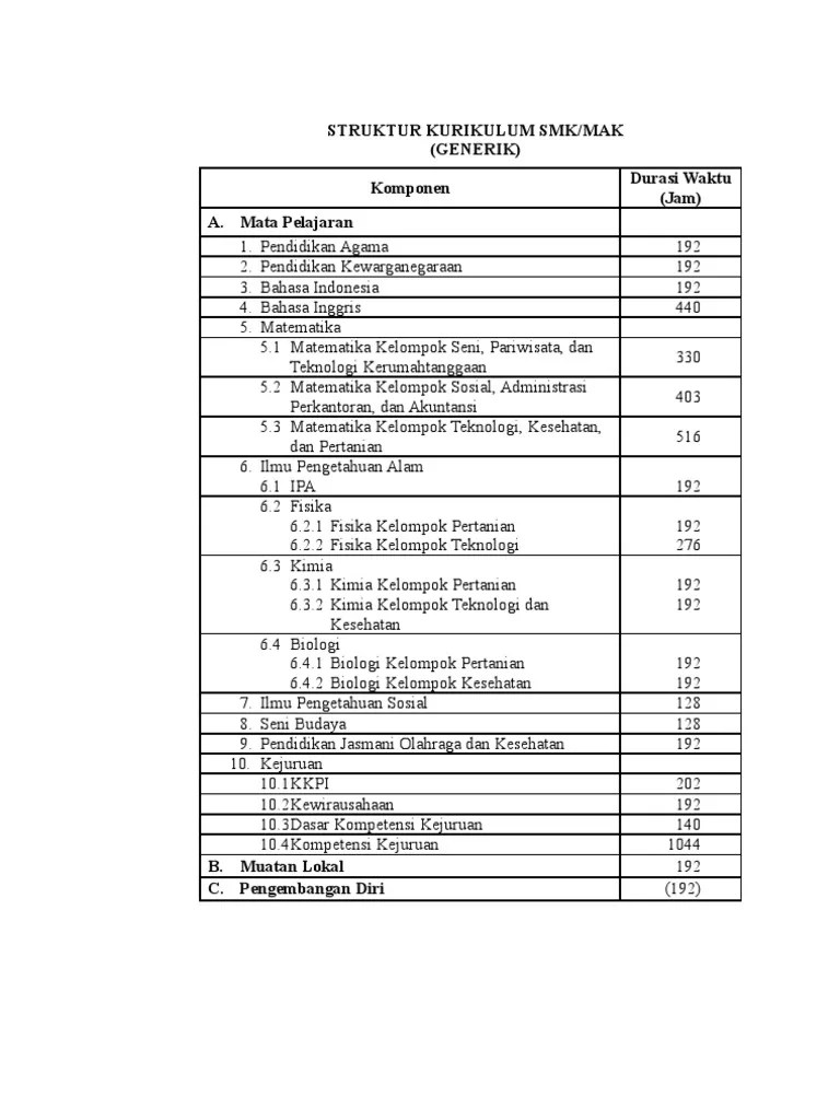 Struktur Kurikulum Smk 2006 / Struktur Kurikulum Otomatisasi Dan Tata Kelola Perkantoran - No, mata diklat, durasi, semester.